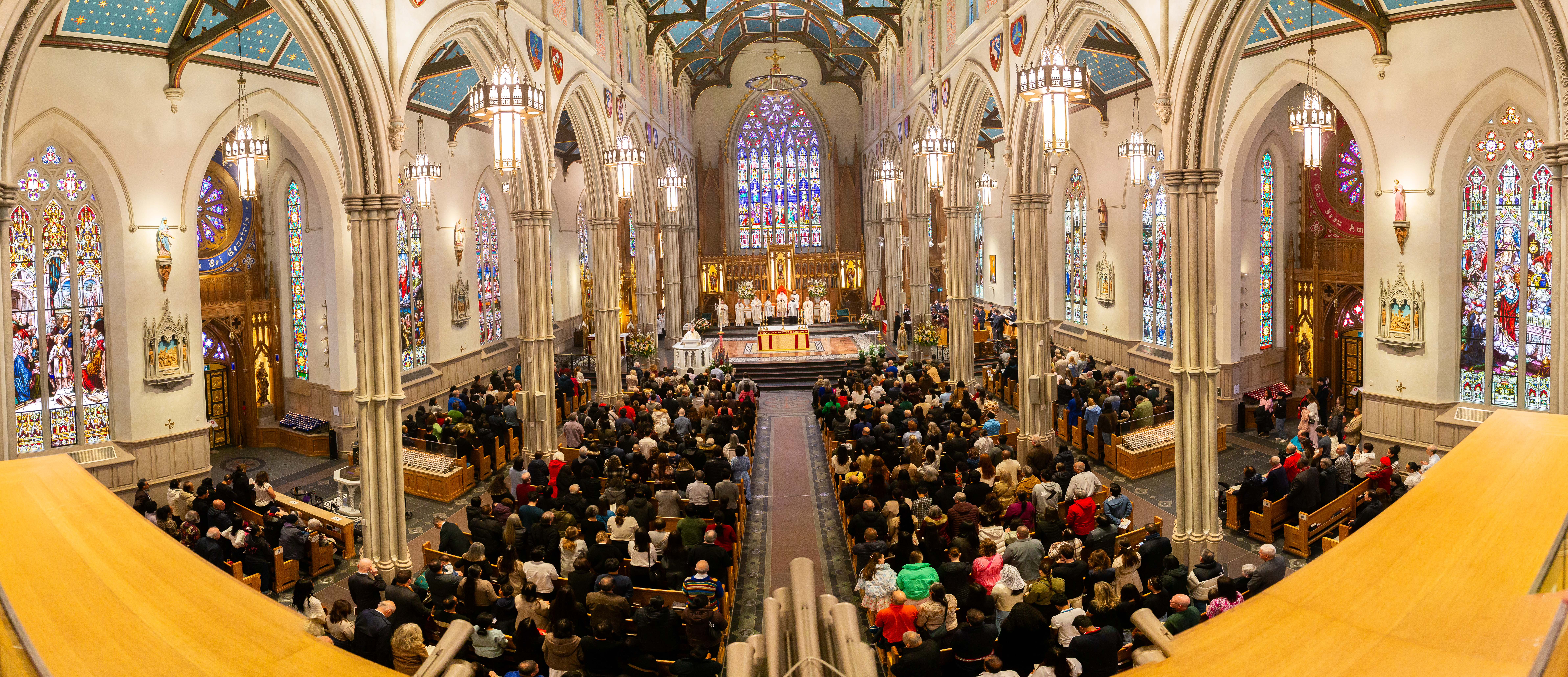 At St. Michael’s Cathedral Basilica, His Eminence Frank Cardinal Leo presided at the Easter Sunday Mass at noon, with the sacred music of St. Michael’s Choir School punctuating the triumphant atmosphere.